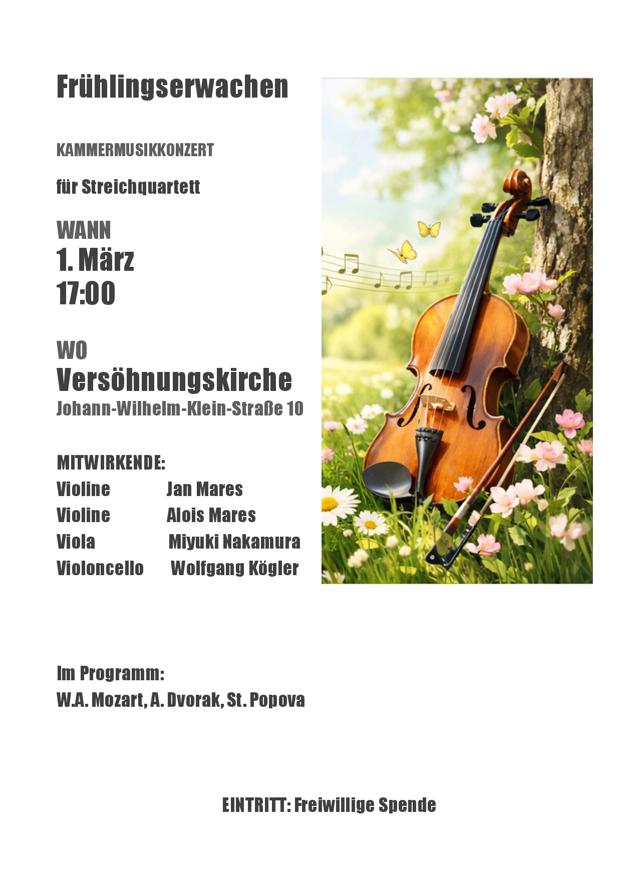 Unsere Kirche ist natürlich auch für die Aufführung alter und neuer Musik ein attraktiver Ort. Dazu trägt neben der einladenden Räumlichkeit und der guten Akustik auch das Vorhandensein von Orgel und Konzertflügel bei.